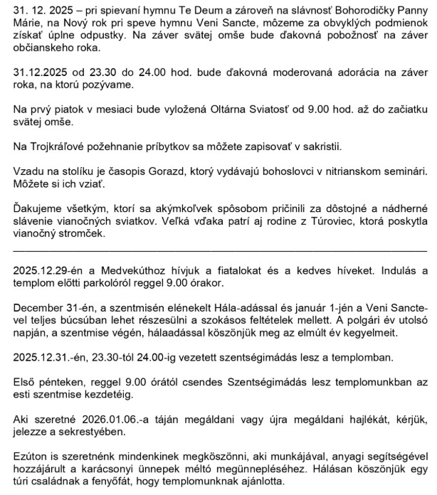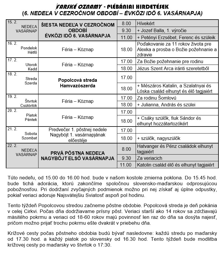 Farské oznamy – Plébániai hirdetések